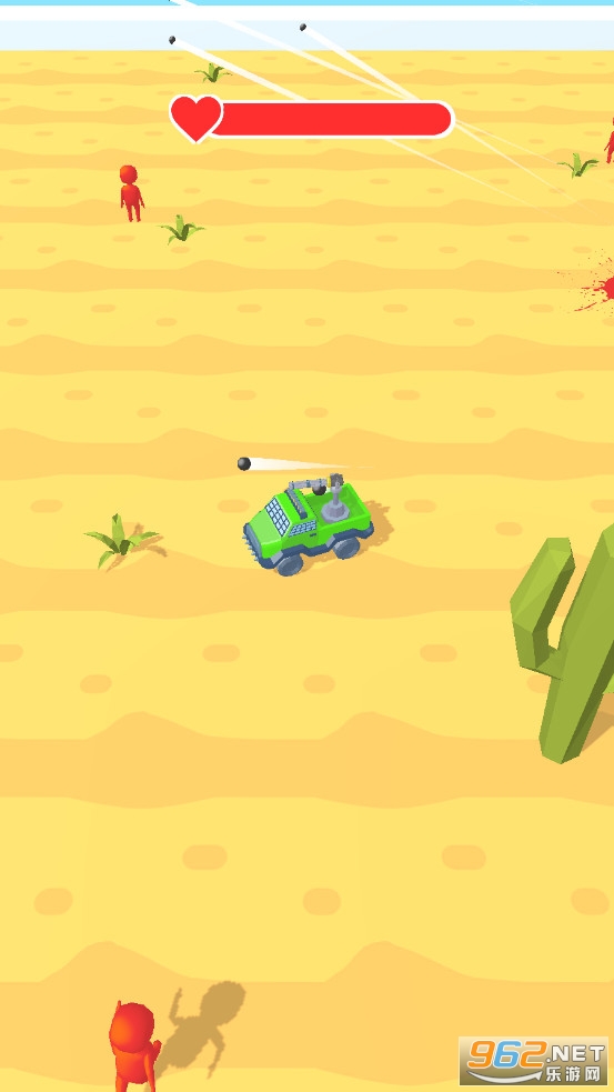 《车轮炮手Wheel Gunner 3D》是一款轻松有趣的驾驶射击游戏,在这款游戏中你将驾驶武装车辆行驶,在场景中将各种各样的红色小人打爆,游戏的操作简单容易上手,靠近小人就会自动进行射击,赶快下载体验吧!