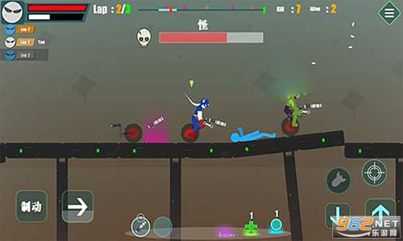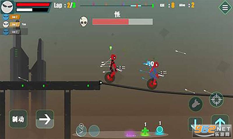 2、多种道具武器,会在你下次拾取后进行替换,为此,你要控制车速,将敌人干掉。