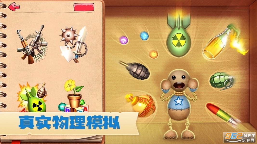 玩家可以选择各种武器暴打木偶火柴人来进行有趣的互动减压。拿起武器打他一顿。每次命中都能得到硬币。有了这些硬币,你可以解锁新的武器或定制你的木偶,因为你喜欢。有很多武器可以打烂这个木偶人。你可以打,爆炸,射击,摧毁,着火,踢,扇,粉碎,殴打,猛击。游戏中最有趣的部分是你可以自定义木偶哥们儿的脸。