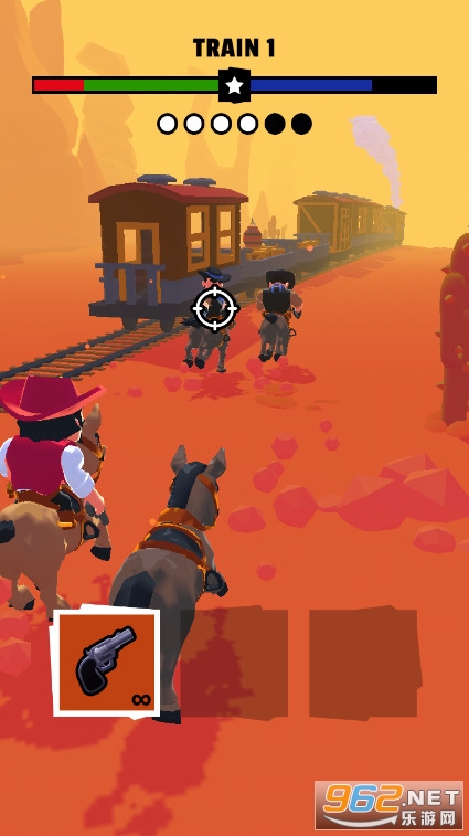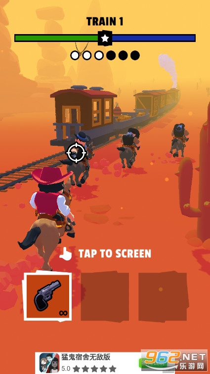 《Grab the train抓火车》以西部主题作为游戏的设定背景,故事的发生地点在一座小镇上,这里最近来了一伙强盗正在对这里进行清洗、掠夺,而你作为一名赏金猎人,你需要做的就是利用手中的枪械将他们全部击毙,以此来换取高额的赏金。