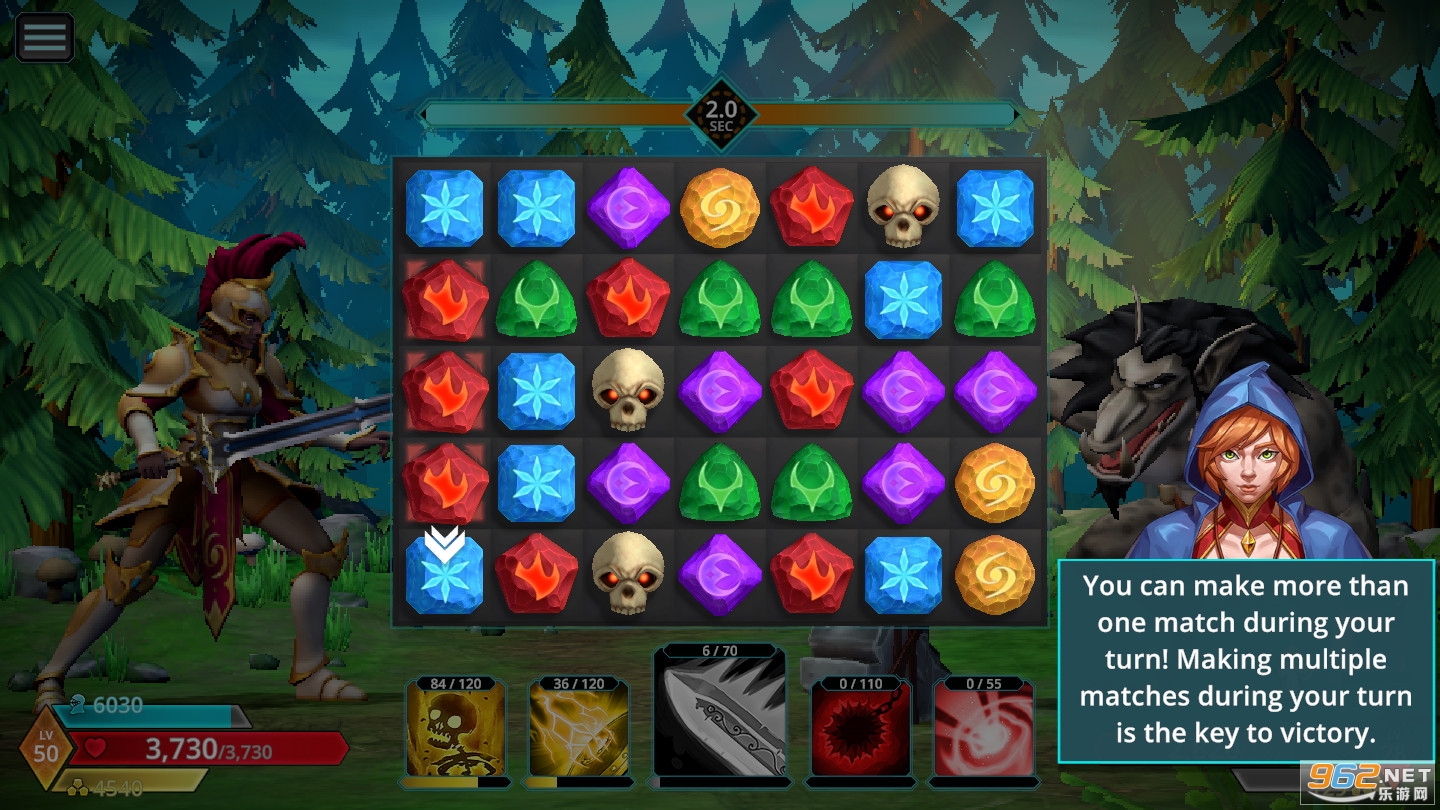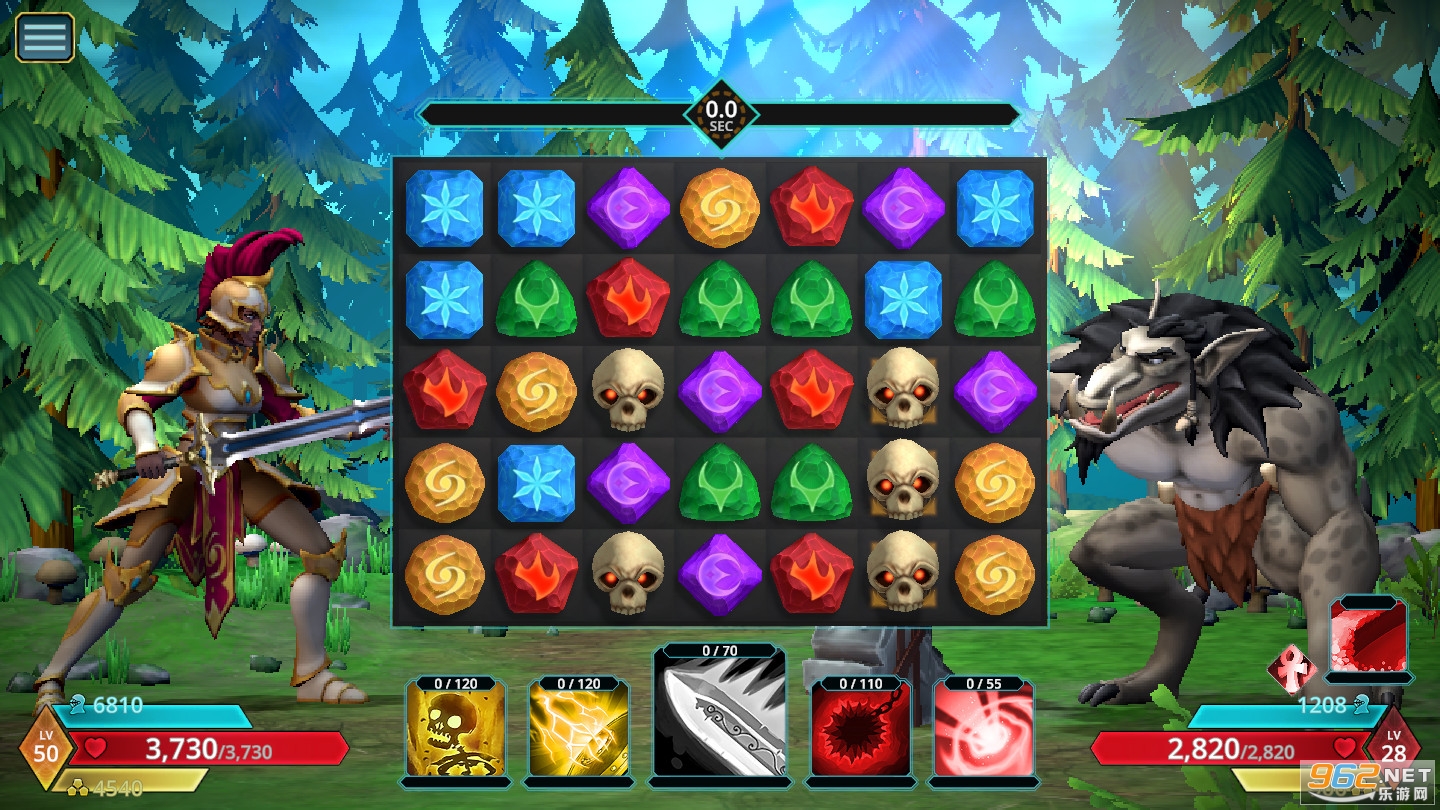 在充满动感的一对一战斗中,向任何方向匹配宝石,为您的法术充电并释放强大的攻击。一个回合可以发生很多事情——计划是胜利的关键。