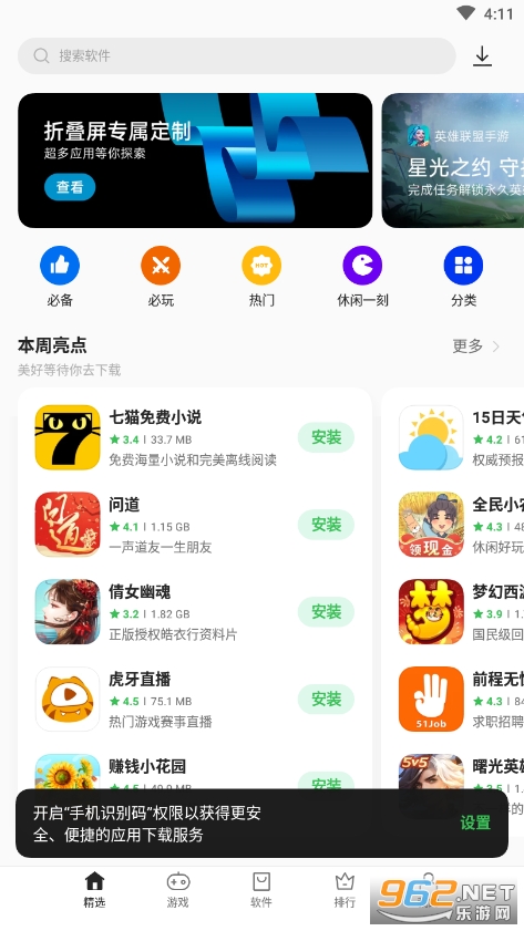 安装OPPO软件商店,瞬间下软件,畅玩编辑精选游戏,随时管理手机软件,是您Android手机的必备首选!