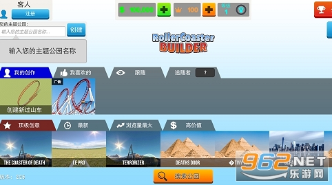 建立游乐设施并扩展主题公园时,您会获得其他玩家的欣赏和喜欢的创作而获得积分。不要忘记设置公园名称,因为这可以让您在过山车排名中竞争并将自己与其他大亨进行比较。