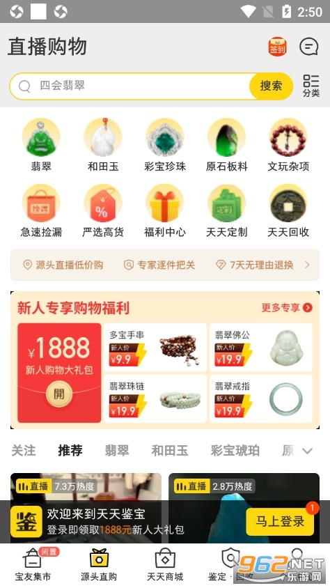 天天鉴宝致力于为大家提供珠宝玉石、文玩把件等物品交流社区,集鉴定师、商家、爱好者与发烧友共聚一堂。让你的玉石文玩等宝贝与大咖无隔阂交流和展示。打造鉴定新概念,与专业鉴定师在线免费面对面交流鉴定,全方位数字化的鉴定评估,像手机跑分一样直观。我们还有源头直供的直播卖场。