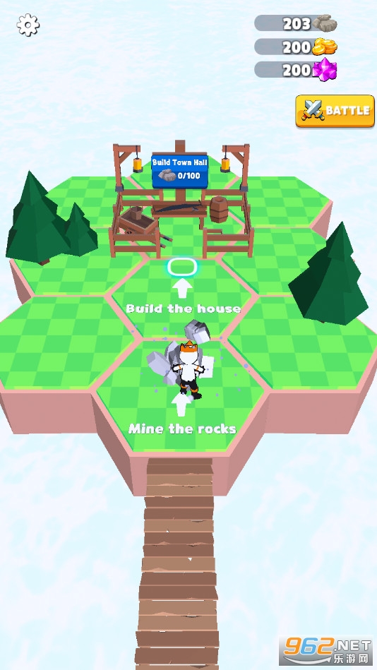 游戏有着清新卡通的游戏画风,简单有趣的游戏玩法,在游戏中玩家需要去建造一座城堡并不断发展为一个帝国,通过收集物资来换取金币,招聘更多的助手来帮助你建设家园。