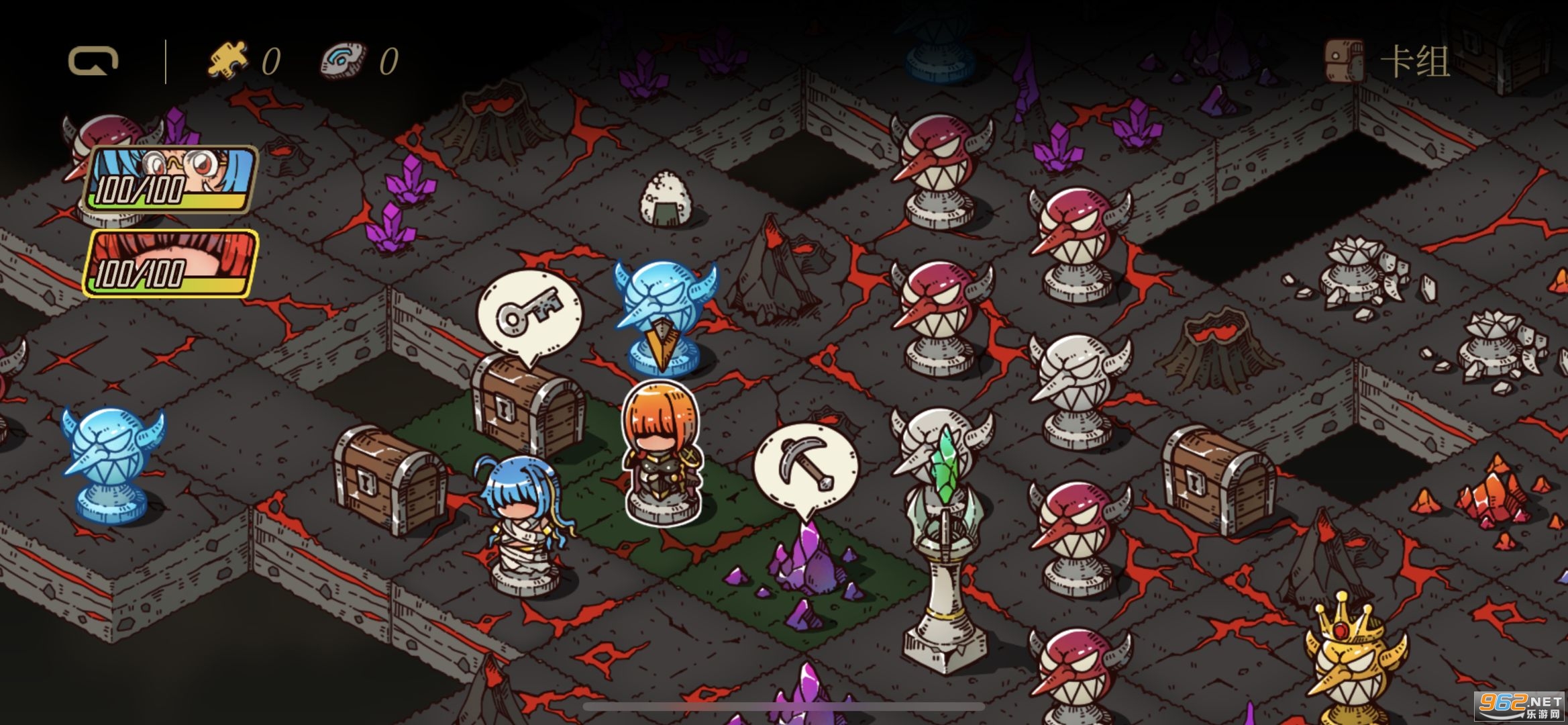 《勇者也要闯魔城》是一款轻度策略卡牌Roguelike游戏,整体玩法思路还是非常简单的,玩家需要通过不断的冒险来收集到人物图鉴,然后带领你的人物一起征战冒险战胜敌人,赢取更多的奖励,解锁更多人物,大家需要注意的是里面每一个人物都有不一样的属性特点,他们使用的技能大招也都是不一样的。