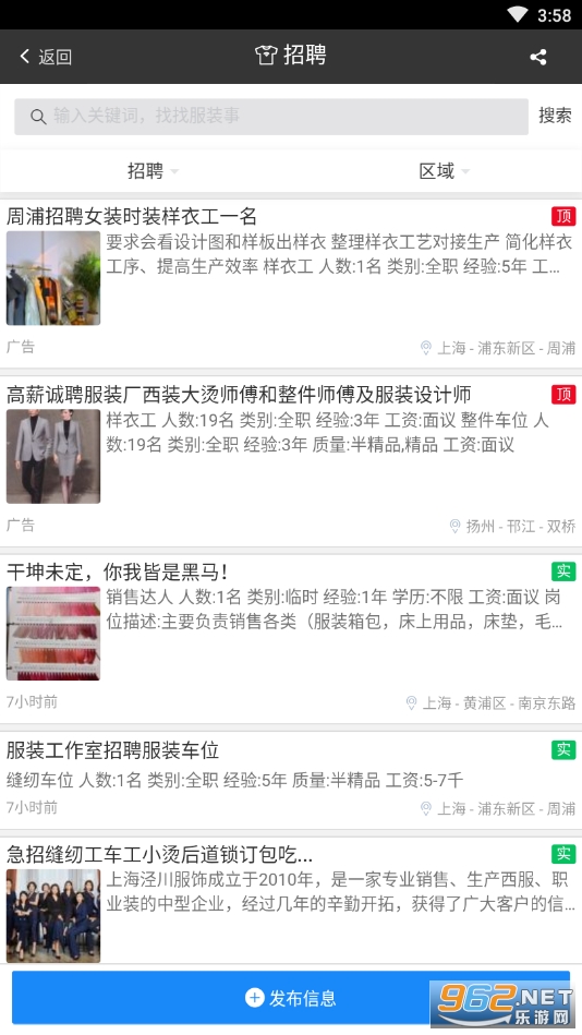 [招聘]:轻松招到服装工人、服装师傅,车工、样衣工、裁剪、版师等岗位齐全;
