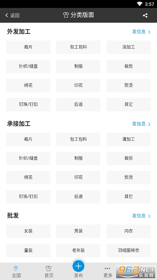 手机上的免费服装加工信息平台,服装加工手机助手,聚集大量服装订单、外发加工、招工求职、临时工、批发采购、面辅料供求、厂房设备等服装生产加工信息。