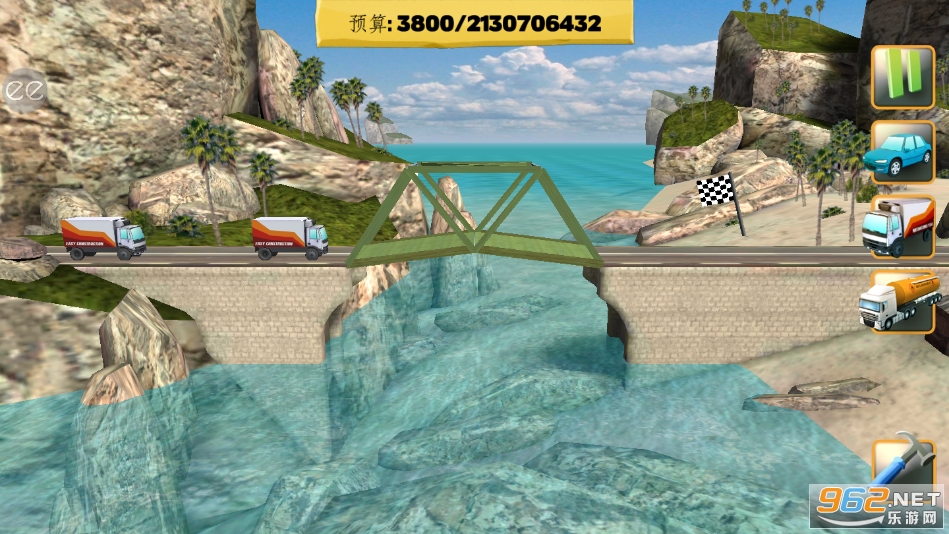 《桥梁建造师》是一款以桥梁搭建题材的小游戏,各种关卡时刻挑战你的耐心和能力,玩家将在各种复杂地形上修建桥梁,接受各类车辆每天的承载测试,准备好了没! 在《桥梁建造师》中,您必须成为一名熟练的桥梁建筑师,共计有40个不同的关卡,可以在深谷、沟渠或河流上修建桥梁。压力测试可以证明您所修建的桥梁是否能承受每天汽车和卡车的连续碾压。 您可以为每一段桥梁选择不同的材料,例如木头、钢筋、钢索或混凝土支柱。 使用合适的材料并保证不超出预算,才能修建一座完美的桥梁。修建一座桥梁时,您可以随意搭配不同的建筑材料,这意味着修桥的方式多种多样–唯一的限制条件是您的预算。