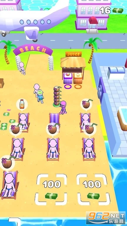 一款轻松有趣的休闲闯关游戏,游戏中玩家将不断的壮大自己的度假村,游戏的操作简单容易上手,服务客人来获得扩建的资金,然后接待更多的客人,推荐给喜欢休闲游戏的玩家。