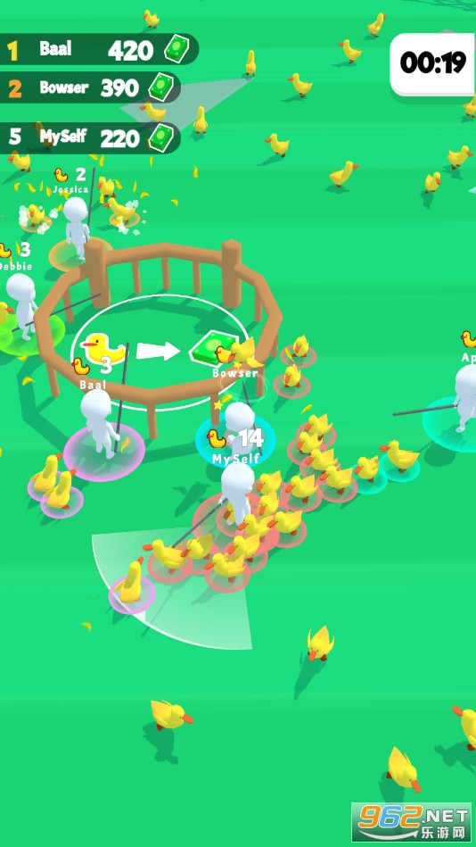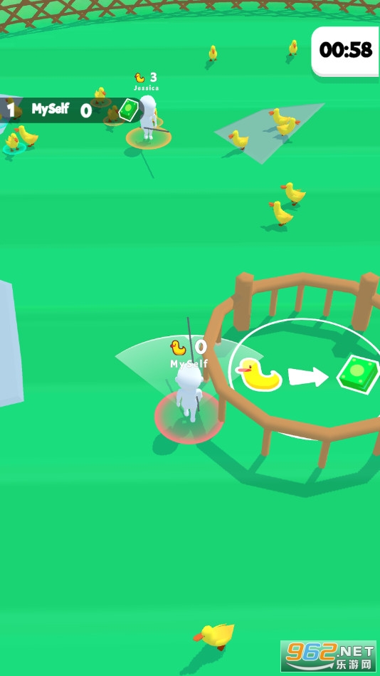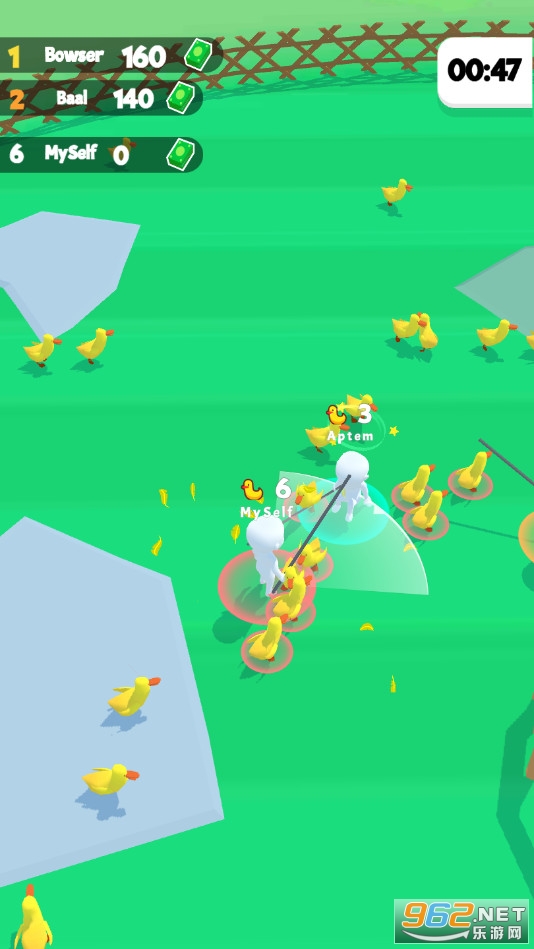 《抓鸭子》(Catch Ducks)是一款卡通风格的io对战游戏,在这款游戏中玩家需要控制自己的角色将鸭子全部赶到围栏中来获取钞票,在游戏结束前玩家中获得钞票最多的获得冠军,玩家指之间还可以互相进行干扰,赶快下载体验吧!