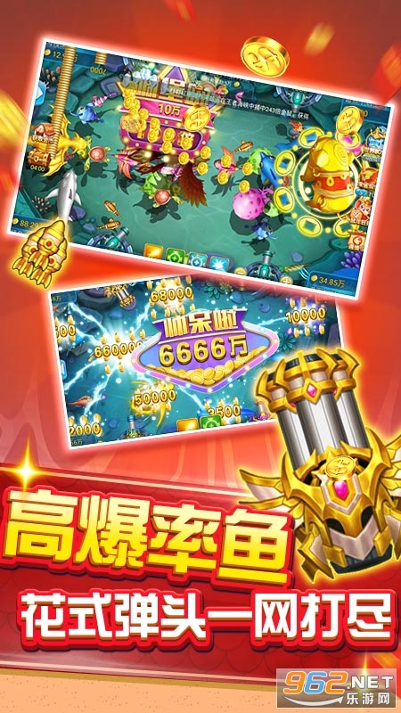 游戏厅经典街机捕鱼风格,100%还原绚丽画面、万倍炮台,爆机变土豪。