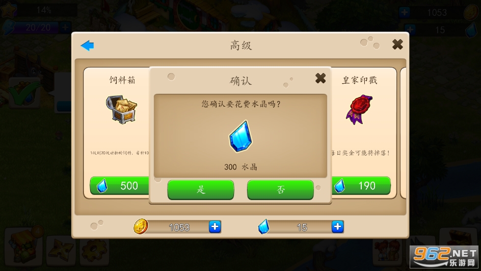 游戏为玩家们准备了非常丰富的农场道具和建筑设施,玩家们可以通过完成任务或者出售农作物来获得金币,然后购买更多农场物品,包括饲料机、谷仓、工具棚、搅拌机、厨房等,也可以购买一些动物,例如鸡、牛、猪、羊、鸭、马、狗熊、鹿等。游戏中只要玩家们有足够的金币,就可以购买到称心如意的东西,然后不断扩大发展自己的农场事业,做一个忙碌而幸福的农场主。