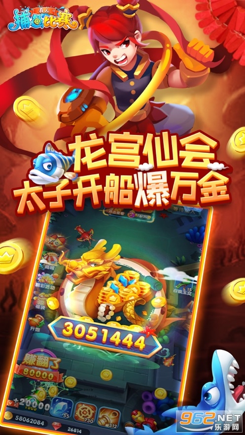 4、龙宫仙会:捕获龙太子得龙鳞,即可开启龙舟!满屏爆鱼得万金!还有可爱“金童”、“玉女”等您来捕获哦。