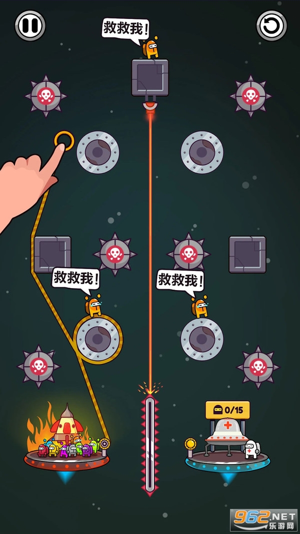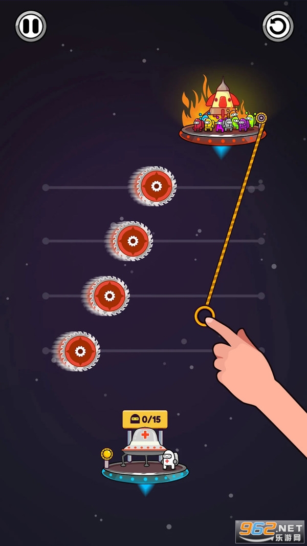 绳索救小人是一款全新绳索救援游戏,《绳索救小人-太空人》 您的主要任务是如何拯救太空人克服挑战,摆脱潜伏的危险。 您是否足够聪明以营救所有被困在火中的太空人?用灵活的大脑解决所有的难题,并成为掌握绳子的难题。 拖动绳索以创建安全的路径。 尝试抢救更多的太空人以取得高分。