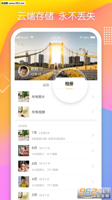 用户上传宝宝的视频和照片,通过云端永久存储,而且可以随时浏览和分享哦!