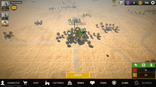 具有六边形格子的地点代表地图上所有地点的战术场地。玩家可以在这些地点采矿获取资源、互相战斗或与各种物体互动。