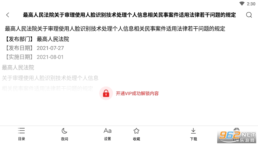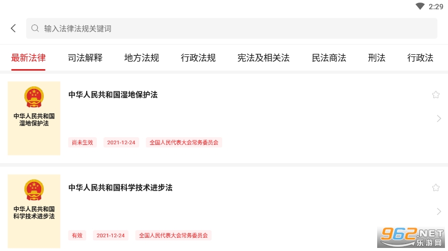 1. 法律法规详细分类,一键查找。包含最高法颁布的全部法律法规大全及司法解释,能够方便地查阅相关的法律法规数据库中司法解释及案例。