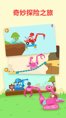 非常不错的儿童手机游戏,画风可爱卡通,玩法生动活泼。小朋友们可以探索恐龙世界,完成各种任务,享受驾驶的乐趣,而且还可以锻炼动手能力!