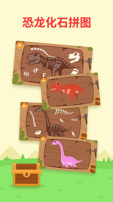 2、增添恐龙化石拼图游戏模块,玩法更多样有趣,通过游戏加深宝宝对恐龙的认知;