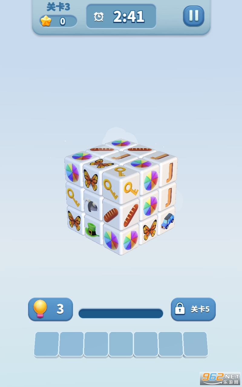 只要把它转出一样颜色的方块即可消除后获得它们,全新的3D魔方消除,将给你不一样的体验,不一样的玩法!