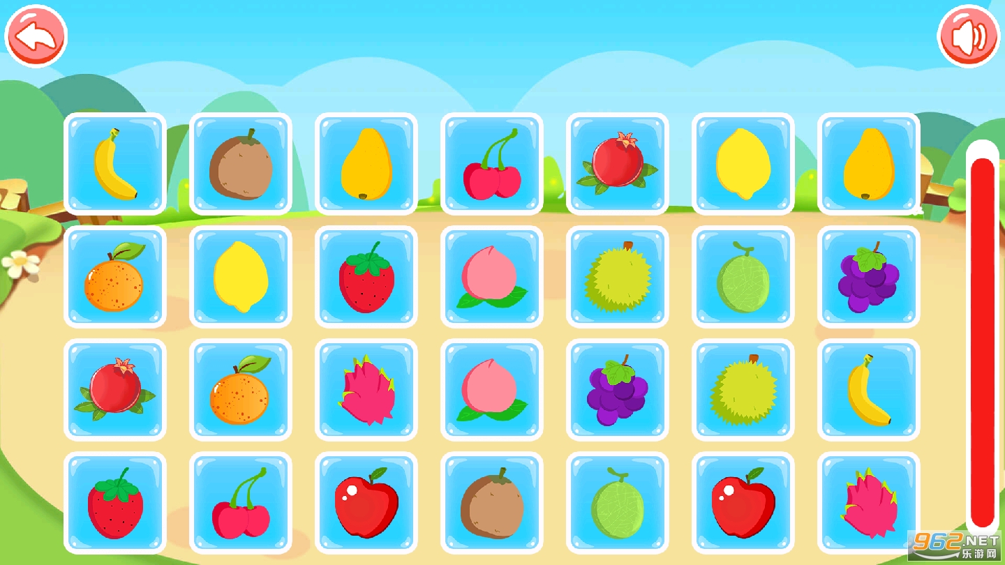 16,学水果-翻翻乐:翻开相同的两种水果卡片,进行消消乐游戏。