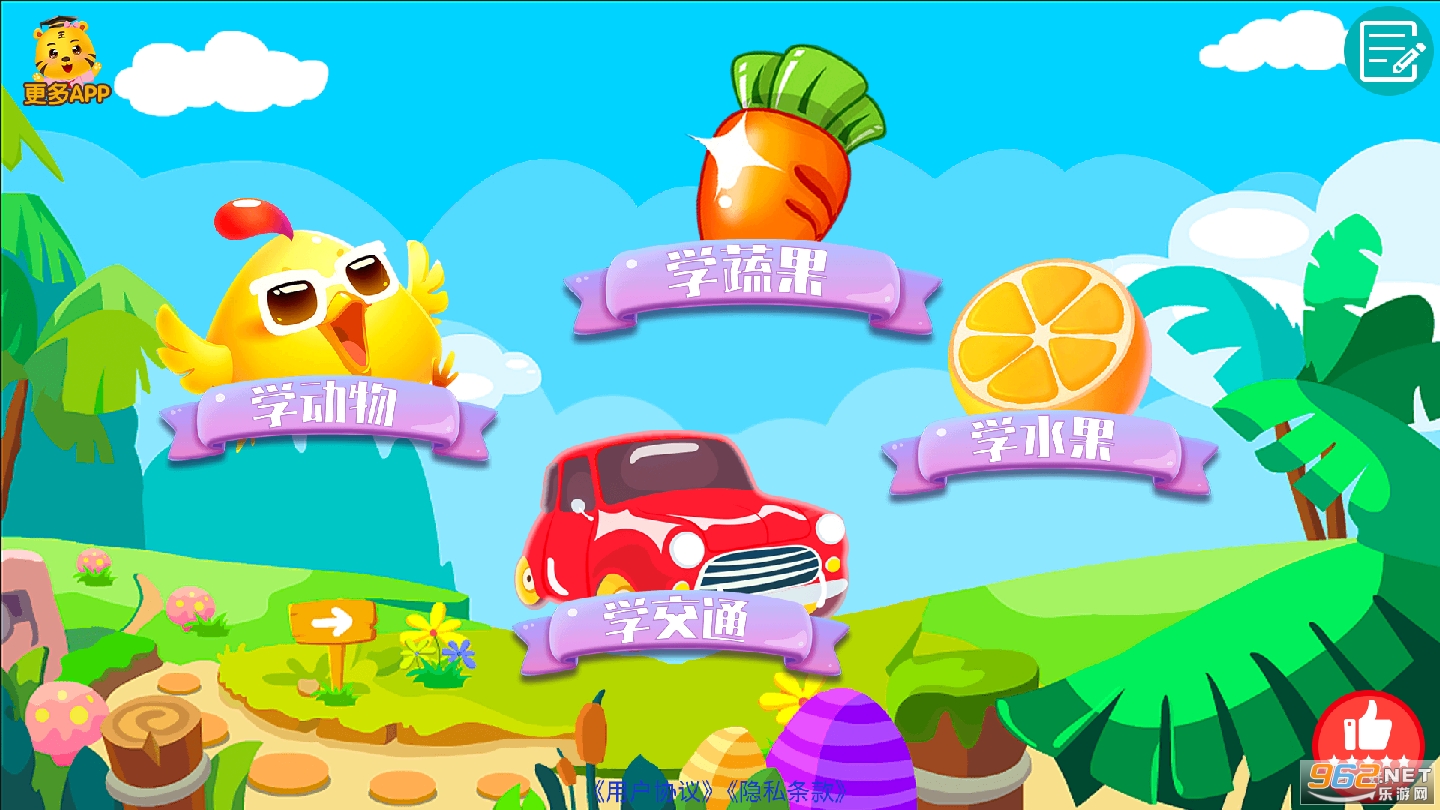 看着是要点广告,但是全部都不需要广告就能够直接免费解锁,能够直接玩到各种不同的小游戏,帮助宝宝们在游戏中进行启蒙,学习各种和蔬菜水果动物交通等相关的知识。