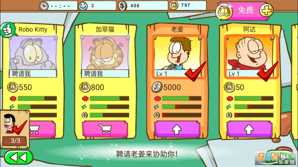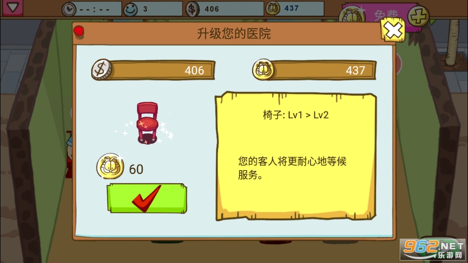 雇用更多员工!训练并使他们升级,以提供更好的服务!