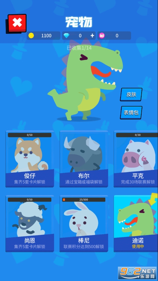 你可以拥有各种主题的萌宠:赛博平克(猪)、侦探慕斯(鼠)、蒸汽迪诺(龙)、丧尸棒尼(兔)……百种皮肤等待解锁!更有丰富称号表情可以收集,看你的搭配能否展现出你霸(dai)气(meng)的一面。