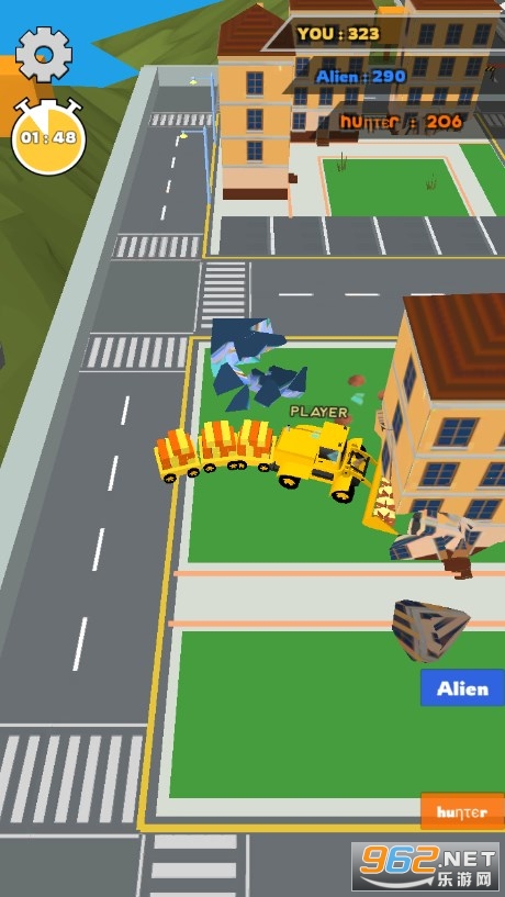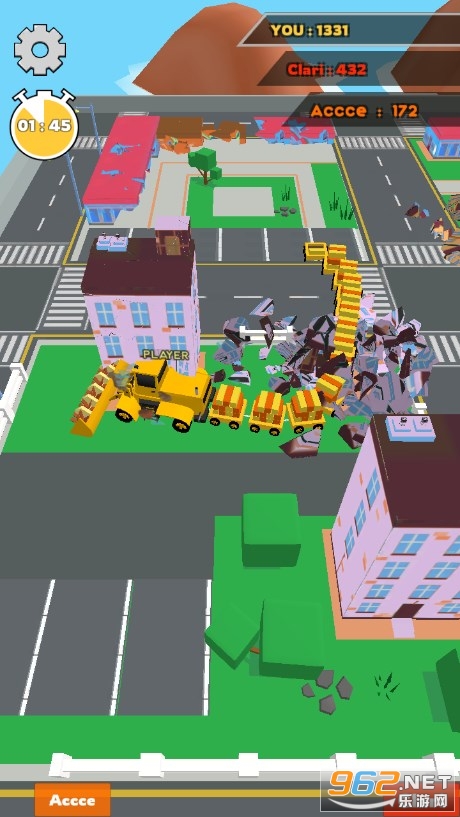 你也可以将它当成一款贪吃蛇游戏,城市中散布的这些建筑物就是你的食物,拆除建筑物相当于吃掉食物,让自己变长变强大,更强大的铲车就能直接干掉其余工程拆除队。