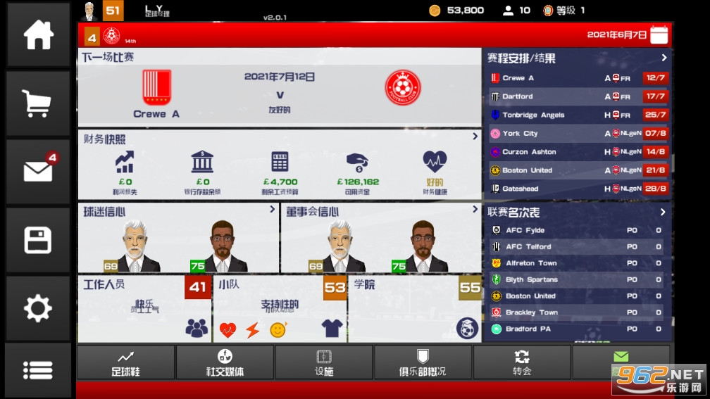 开发和升级您俱乐部的设施,包括体育场,健身中心,医疗,训练场和青年学院。