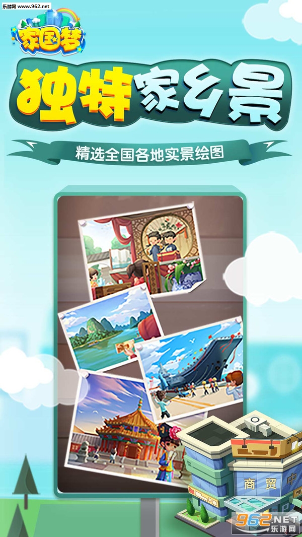 《家国梦官方安卓版》是腾讯联合人民日报以新时代国家发展为背景的建造类游戏,以可爱的卡通画风描绘了家国山河的宏伟历程,并融入了自由建造的游戏模式,让玩家可以以自己的创意和理念来为国家的建设出一份力。