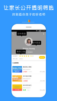 所有的科目都能进行辅导,超多名师为你进行线上一对一讲解,各种免费的试听课程让你提前进行体验,家长也能够根据各方面的信息找到最适合你孩子的老师。