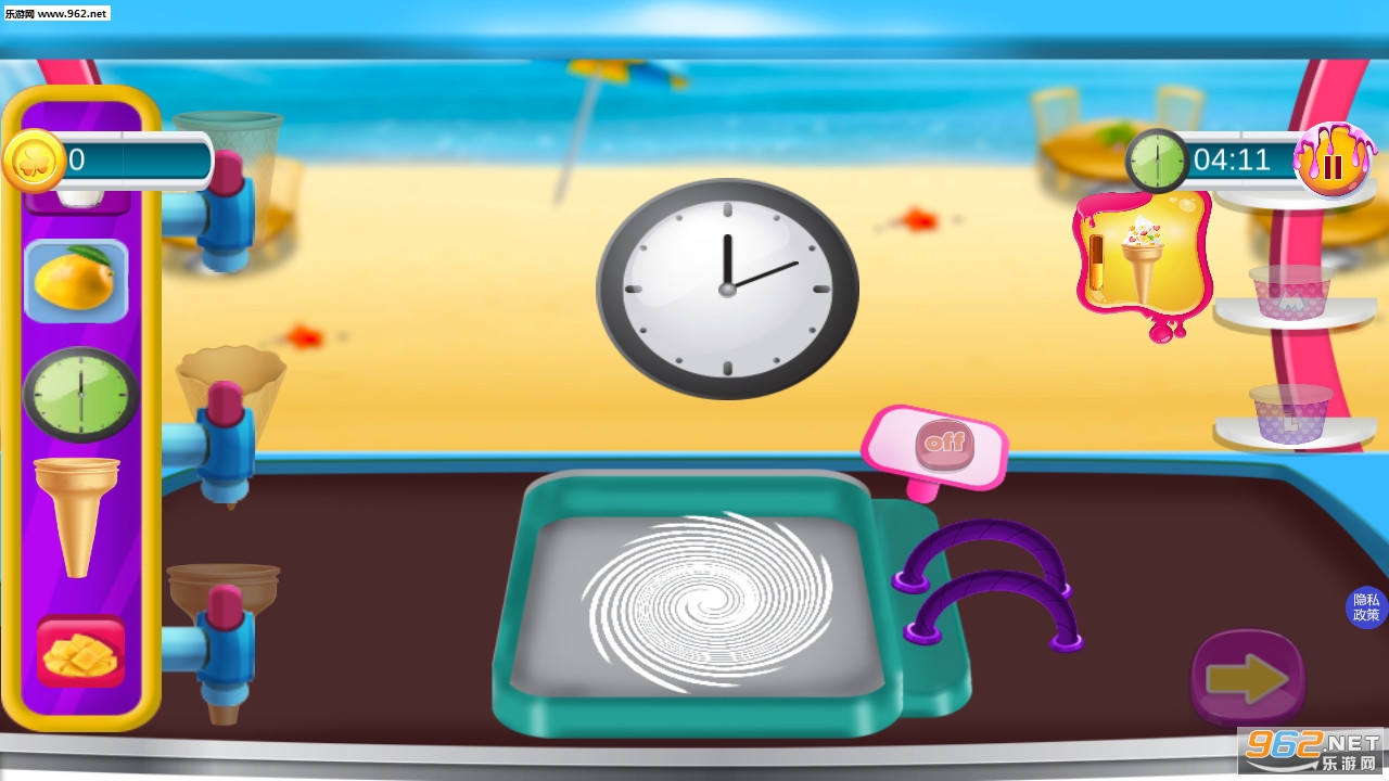 超适合夏天玩的一款模拟制作雪糕冰淇淋的游戏,你在海滩边开了个冰淇淋摊,时刻注意顾客们的需求,做出让他们满意的雪糕吧,时间是有限制的哦。