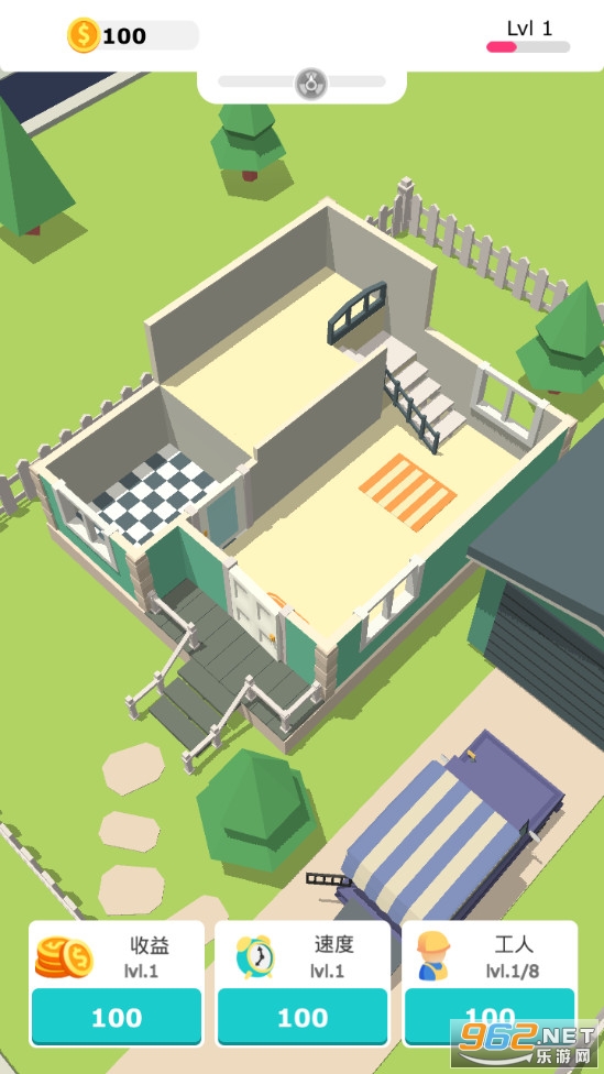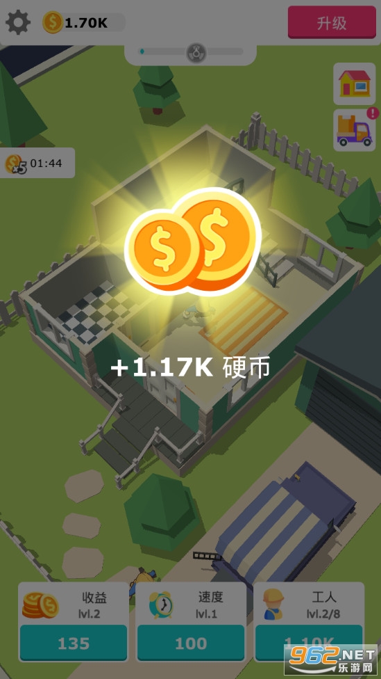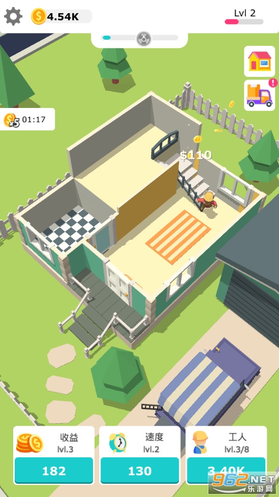 工人只要开始工作即可积累资金,消耗资金可以升级货车、工人数量、效率等等,让你的装修之旅急速起飞