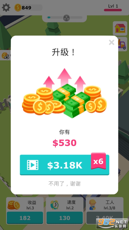 趣味的放置经营游戏,游戏玩法简单,就是攒金币升级技能,增加人数、速度和收益,解锁更多的房子车子等,小编带来的是搬砖我贼溜破解版,不用看广告就可以获得奖励,喜欢的朋友可以下载试试。
