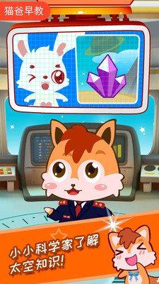 以宇宙航天为题材,宝宝可以体验宇航员的角色,也可以参与多种生动的互动游戏,不仅让宝宝学习关于宇宙的知识,而且还可以锻炼动手能力和思考能力!