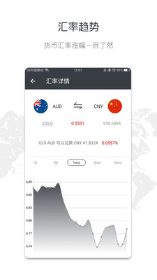 * 汇率趋势图 - 货币汇率涨幅一目了然