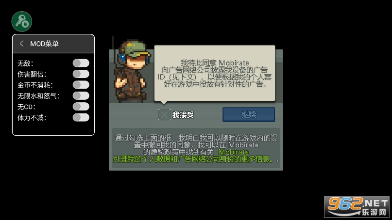 无敌,伤害翻倍,金币不消耗,无限水和怒气,无cd,体力不减