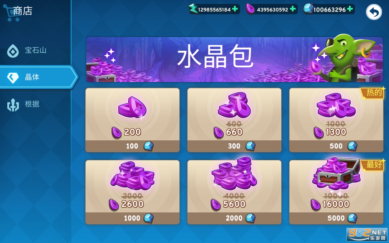 在商店使用宝石购买水晶