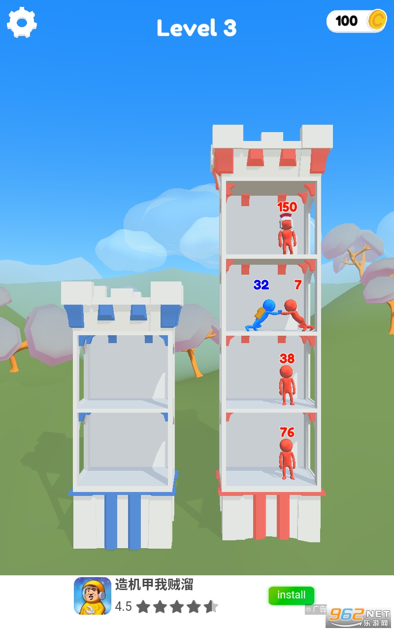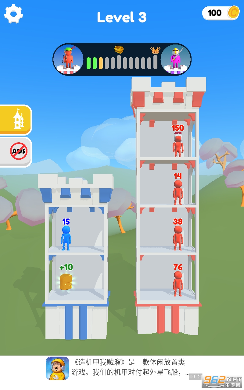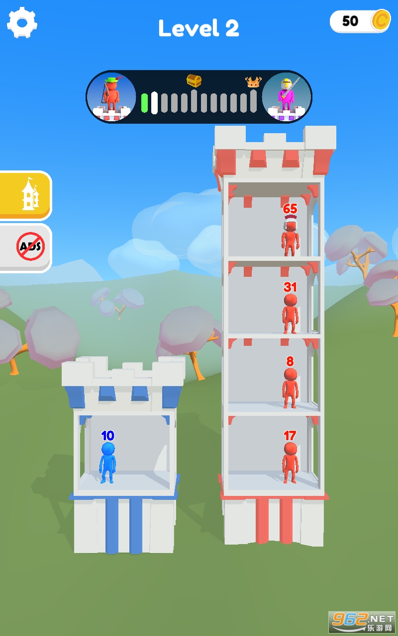 《推塔Push Tower》一款简单易学的回合制数字策略对战游戏。在小镇的小塔中开始您的冒险,并用您的智慧发动战争,沿途战斗、突袭和征服敌人的城堡。将强大的敌人推离每个塔楼。如果成功,您将获得他们的力量,接管他们的塔楼,并距离击败老板王更近一步。