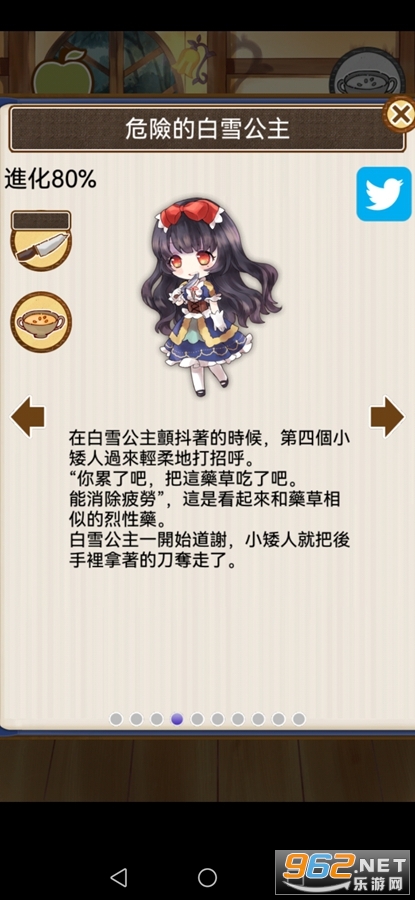趣味的白雪公主游戏,游戏加入了众多不同的白雪公主形态,通过升级进化来解锁,可以查看各种白雪公主插图,不同的选择会有着多样的结局,喜欢的朋友可以下载试试。