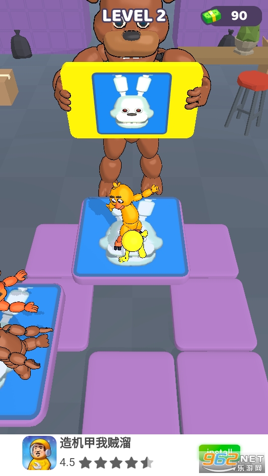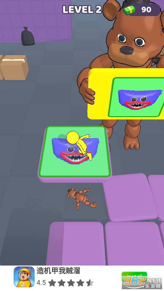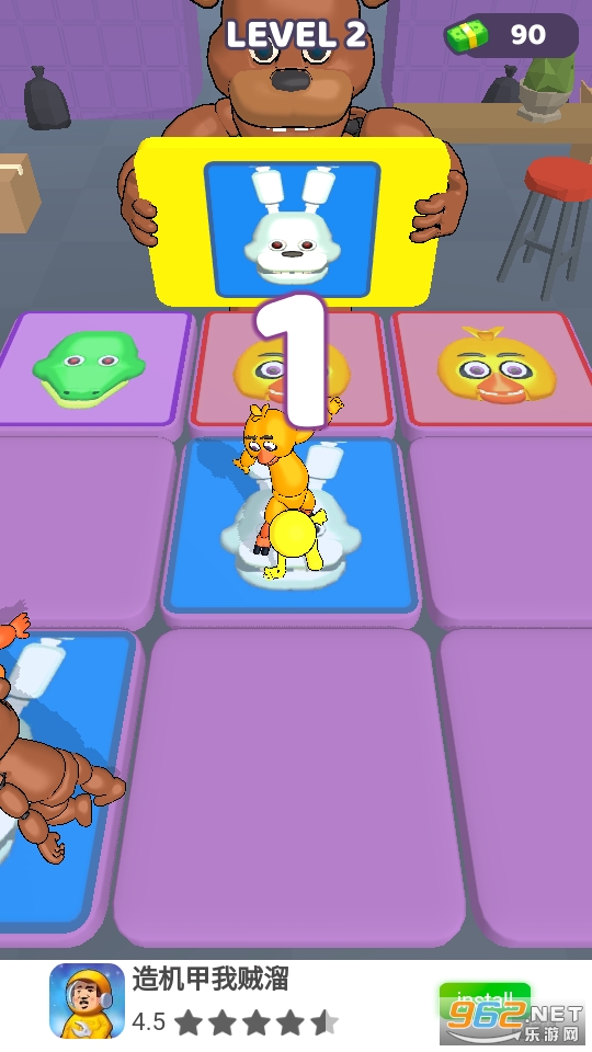 2、你想要控制自己的角色不断的跳跃到显示的浮块上,和你的对手竞争一个方块的位置,只有站到最后胜利。