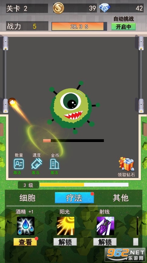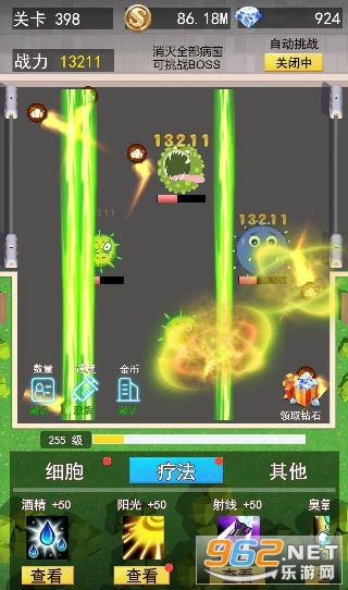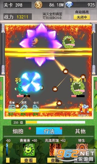 培养细胞,使用疗法,让细胞获得强力的技能,消灭病菌。