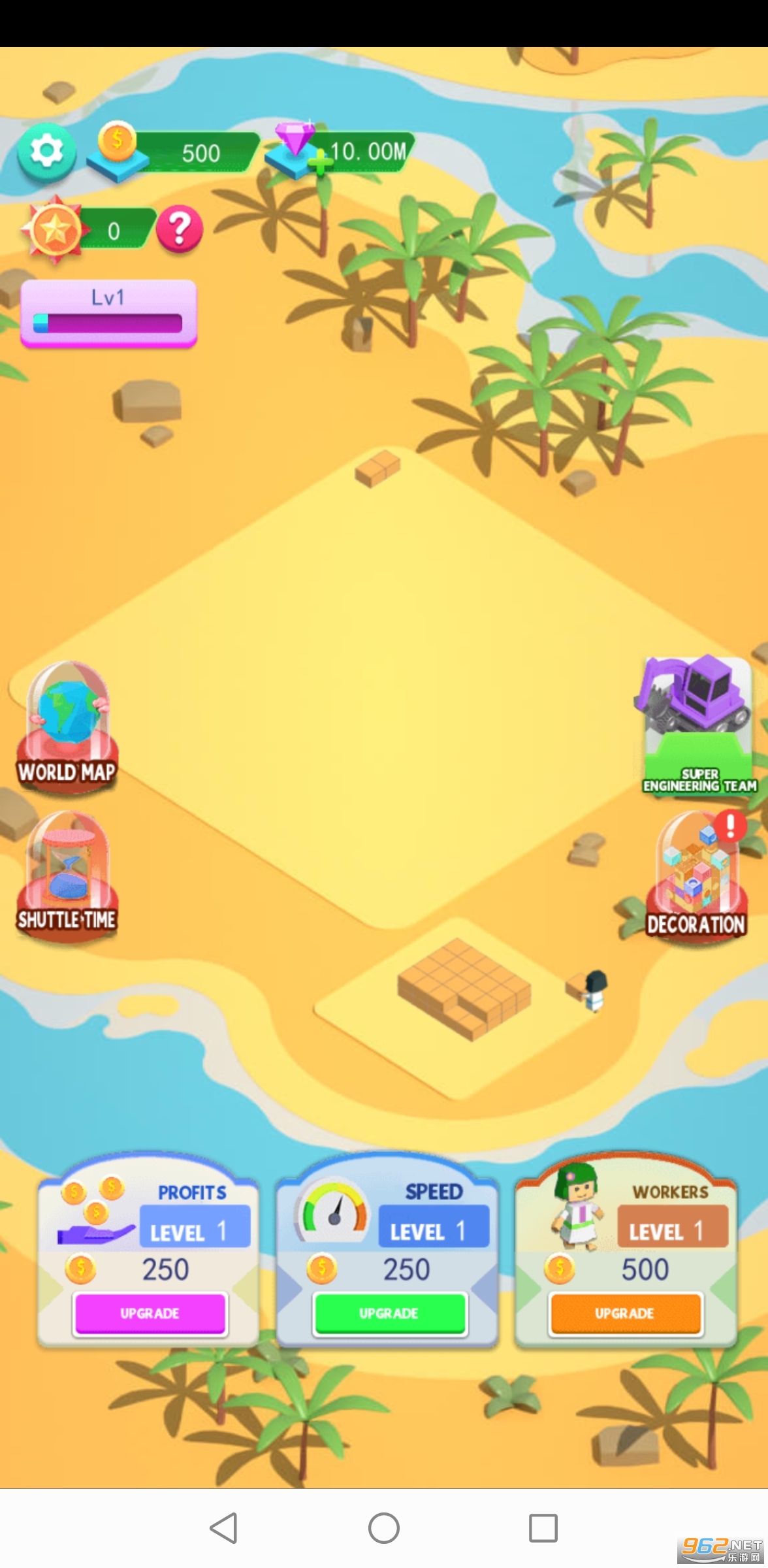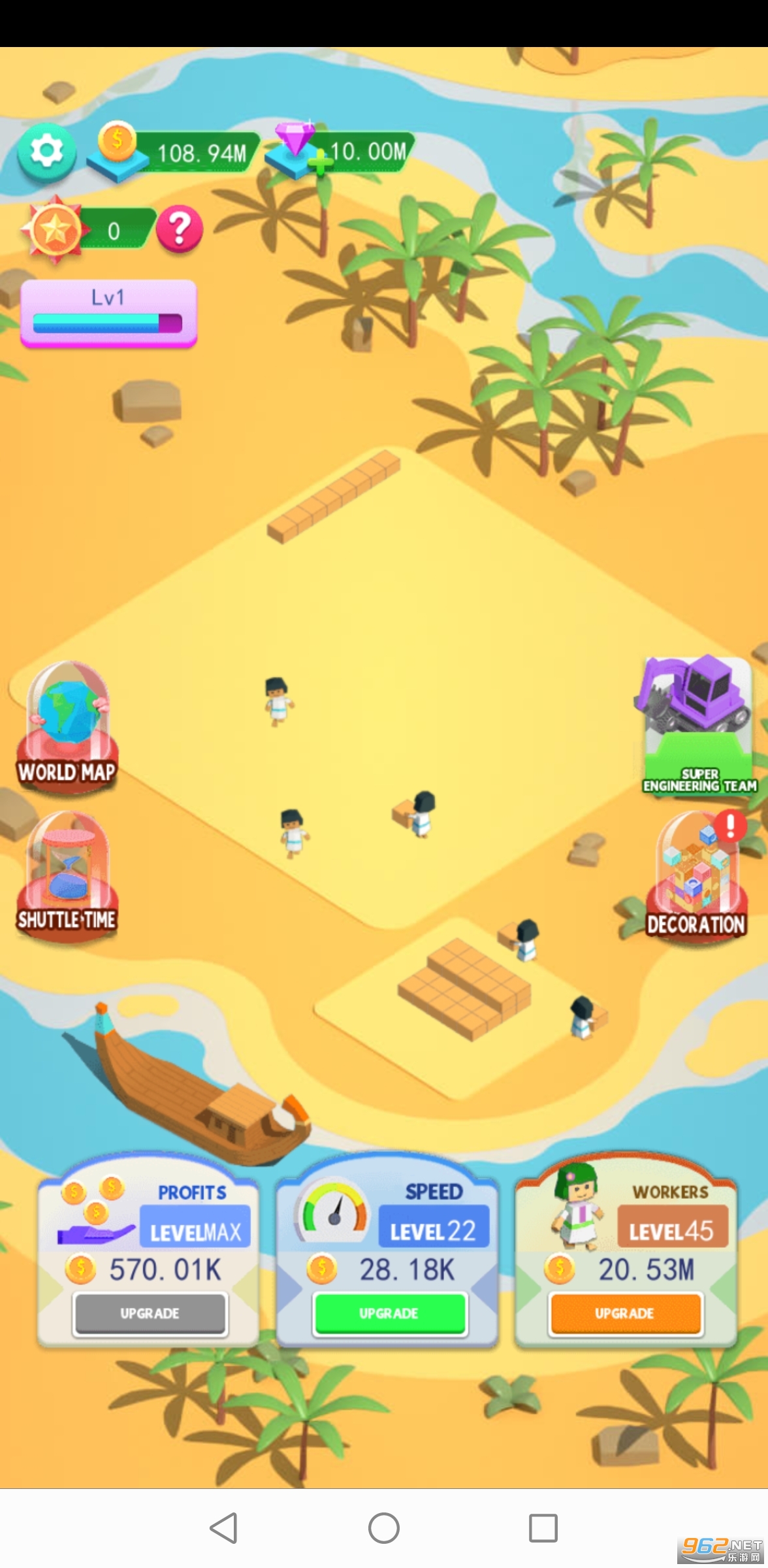 随着工人的增加,施工速度将大大提高。请不要忘记升级工人等级,从而增加收入并获得更多金币。