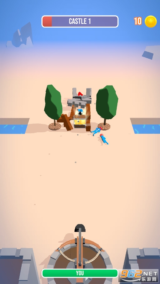 《城堡围城者Castle Besiegers》拖动以瞄准并释放以向敌人射击爆炸的士兵。当心,他们正在向你回击!