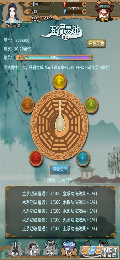 门派奇遇,修炼稀世绝学、聚灵法阵,增进五行精通、洞府经营,挂机获取海量资源