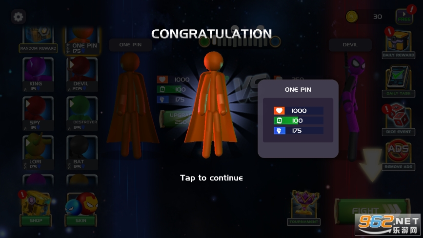 比较热血,刺激的火柴人格斗pk游戏,里面拥有丰富的角色可以让你来解锁,每个角色都有自己的技能和大招,让玩家可以爽快的战斗,逼真的画面,流畅的操作,让你感受无比爽快的战斗快感和乐趣,对游戏有兴趣就来下载吧!