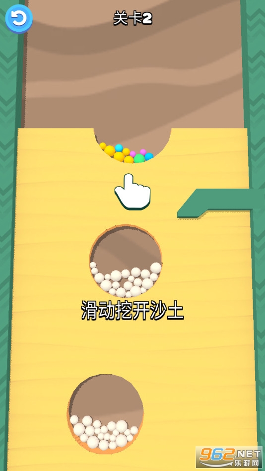 1、根据你挖出的隧道,球球会自动跟着隧道掉下来,直至落入货车的车厢当中。