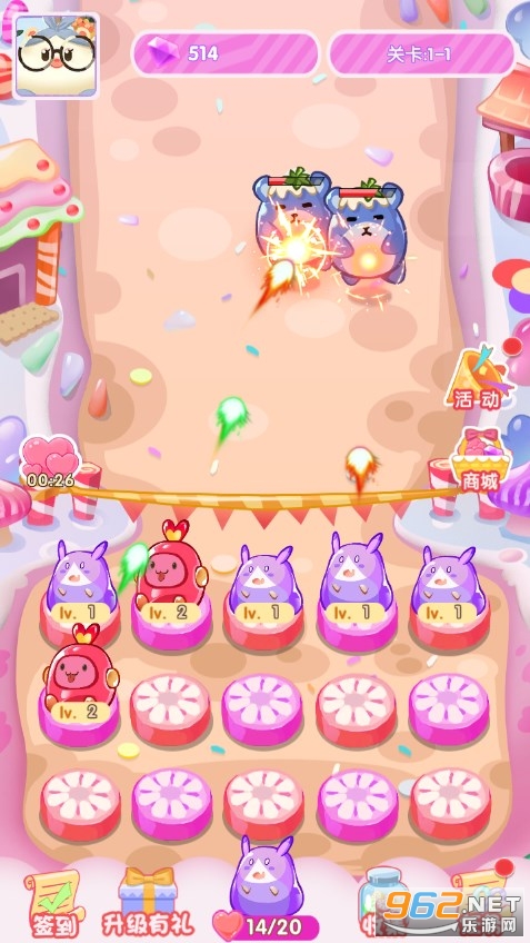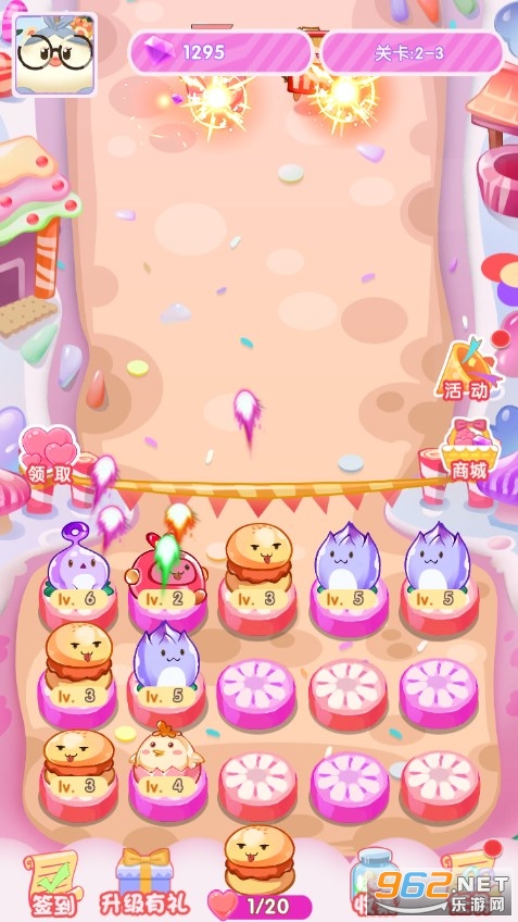 --玩家升级可以获得资源,可以用于召唤更多的士兵,建立强大的甜品军团。